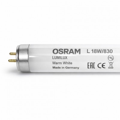 Röhre OSRAM L 18W/830 LUMILUX Warm White EAN 4050300517810. Leuchtstoffröhre der marke OSRAM. Leistung 18W. Sockel G13. Länge 59 cm. Farbton 830 warm weiß. Ausgezeichneter lichtstrom.
