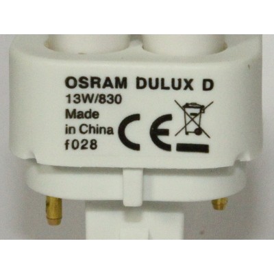Cfl OSRAM DULUX D 13W/830. Socket G24d1. Power : 13W. Hotter color 3000 K ( warm white ).Bulb 2-pin.