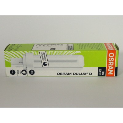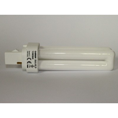 Compact fluorescent lamp DULUX D 13W/840 trademark OSRAM. Light bulb of the highest quality. Power 13W. Compact fluorescent with a separate power supply, consisting of two tubes bent. Bulb 2-pin ( 2 pin ). Life span 10000 hours. Culot G24d-1. Tint : cool white 4000K. Very good luminous flux.