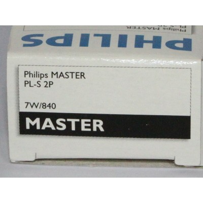 PHILIPS MASTER PL-S 7W/840/2P. Cfl. 2-Pin ( 2 PIN ). Power 7W ( 400 Lumens ). Length of the bulb 13.5 cm. White light at 4000 Kelvin. Energy class B