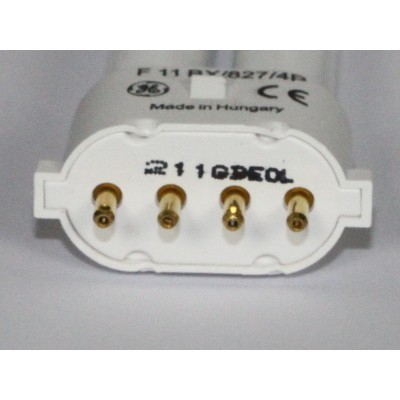 GE BIAX S/E 11 W/830 ( F11BX/830/4P ) Bombilla fluorescente compacta. El poder de 11W ( 900 lumen ). Bombilla, cuatro pin ( de 4 Pines ). Socket 2G7. Luz cálida 3000 Kelvin. La duración de la bombilla 22,2 cm. Clase de eficiencia energética a Una