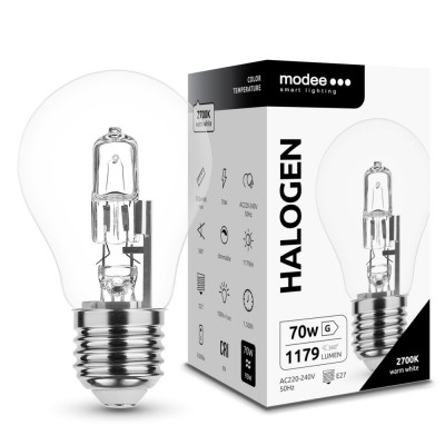 Esta bombilla halógena ECO E27 70W es una alternativa perfecta a las bombillas halógenas clásicas, ofreciendo al mismo tiempo una calidad de luz comparable a las principales marcas del mercado. Es totalmente compatible para el reemplazo directo de bombillas OSRAM y PHILIPS, sin necesidad de modificar la instalación existente.