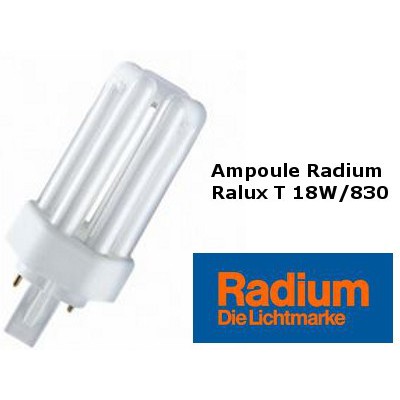 Los bulbos de RADIO RALUX T ( RX-T ) son las bombillas de luz son 100% compatible con bombillas de la marca OSRAM Dulux T ), Sylvania Lynx T ), PHILIPS ( Master PL-T 2P ) o GE Biax T ). La bombilla fluorescente compacta T ( como el triple ) se compone de tres tubos doblados. La lámpara fluorescente compacta (T 2-pin .
