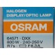 Ampoule OSRAM 64571 DXX 800W 240V 250V R7s Halogen display Optique lamp. EAN 4050300283388. Référence OSRAM 64571. Longeur 78mm, largeur 14 mm. Température de couleur : 3200 Kelvin. Attention : dernières ampoules disponibles !