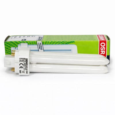 Ampoule fluocompacte OSRAM DULUX D/E 18W 840 4 broches. Ampoule de qualité irréprochable. Puissance 18W. Fluocompacte à alimentation séparée, constituée de deux tubes pliées. Ampoule à 4 broches ( 4 pin ). Culot G24q-2. 1200 Lumen. Teinte : lumière blanche 4000K. Très bon flux lumineux.