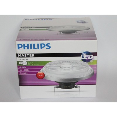 Les PHILIPS MASTER LEDspot LV AR111 15W 3000K 24° G53 remplacent directement les Osram Halospot 111 41840 FL 12V 75W 24°. Même format AR111 Ø111 mm, même culot G53, installation simple en 12V avec transformateur existant. Profitez d’un faisceau précis 24°, d’une lumière chaude 3000K et jusqu’à 80 % d’économie d’énergie avec une durée de vie jusqu’à 40 000 h.