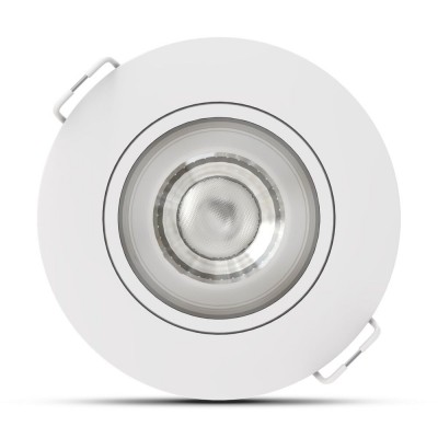 Spot LED encastrable rond orientable de 4W, délivrant 480 lumens avec un excellent rendement de 120 lm/W. Technologie 3CCT pour choisir entre blanc chaud, naturel ou froid. Dimmable, faisceau 36° pour un éclairage précis. Installation facile (découpe 68 mm), orientable 25°, IP44, idéal plafonds suspendus et pièces humides.
