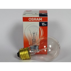 Lampadina CLASSICA A 15W 230V marca OSRAM. Durata : 1000 ore. Queste lampadine presto scompariranno dal mercato sotto le direttive dell'ue.