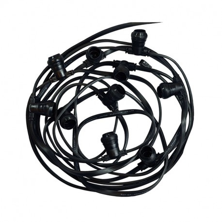 GARLAND JUSTO TELEVISÃO por CABO PRETO de 10 metros 20 soquetes E27. Televisão a cabo preto para 20 soquetes E27. Compatível com : DIODO emissor de luz / fluorescente compacta / Halogênio. Potência máxima ≈ 1800 Watts. Comprimento máximo de 200 a 400 metros, dependendo da potência da lâmpada.
