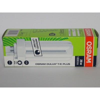 Lâmpadas fluorescentes compactas da Osram DULUX T/E 26W/827 MAIS GX24q-3 LUMILUX INTERIOR. Luz do bulbo da mais alta qualidade. Potência de 26W. Fluorescente compacta com uma fonte de alimentação separada, que consiste em três tubos dobrados. A ampola de 4 pinos conector ( 4 pinos ). Culot GX24Q-3. Tonalidade : branco quente 2700K. Muito bom o fluxo luminoso.