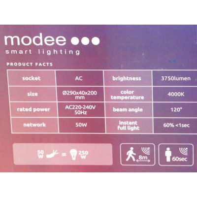 Прожектор 50W 4000K с датчиком с движения. СВЕТОДИОДНЫЕ технологии. Класс Потребления Энергии A++. Потребляет 50 ВТ, а освещает как лампа 250ВТ или 3750 люмен. Белого света 4000К. Обнаруживает движение до 8м. Размеры : 290 X 40 X 200 мм. Может использоваться на открытом воздухе. Размеры : 290 X 40 X 200 мм.